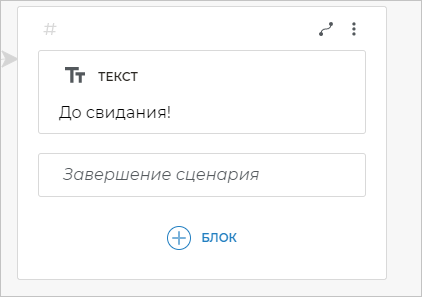 Блок Завершение сценария преимущественно используется в сценариях для обзвонов и голосовых ассистентов.