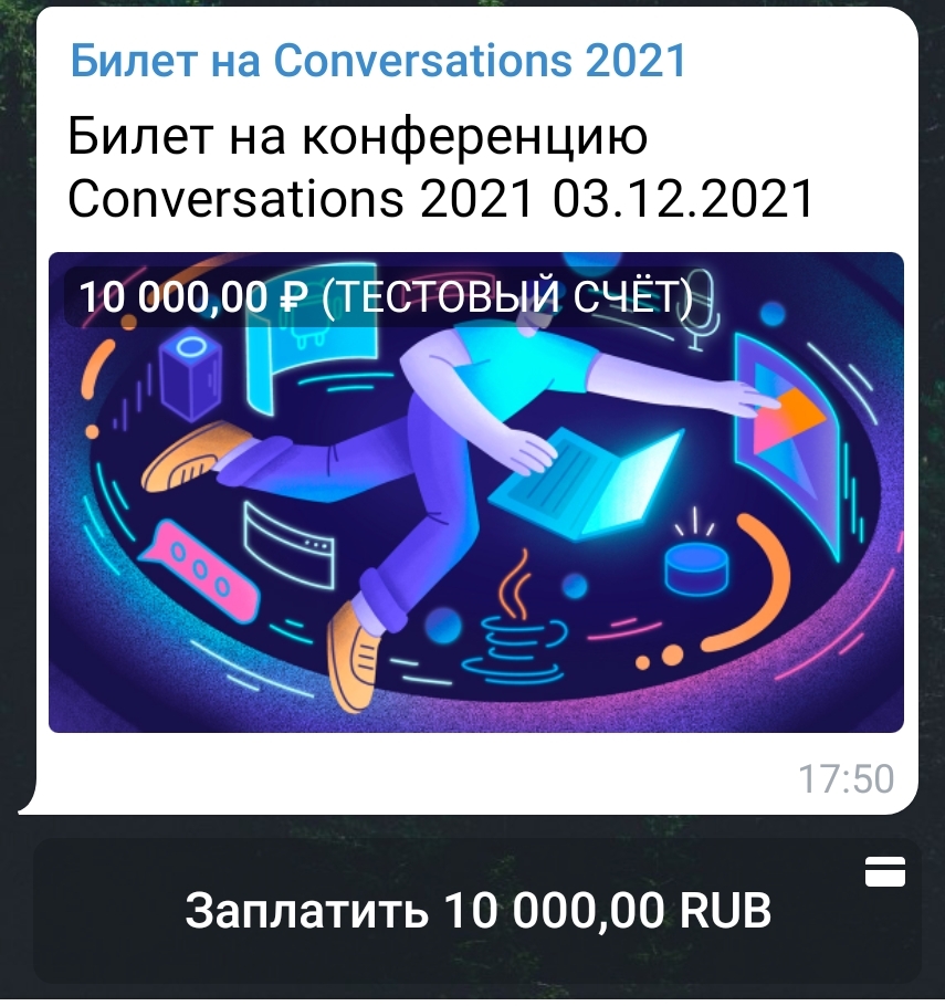 Теперь, когда бот перейдет на данный блок в сценарии, он отправит клиенту форму оплаты:
