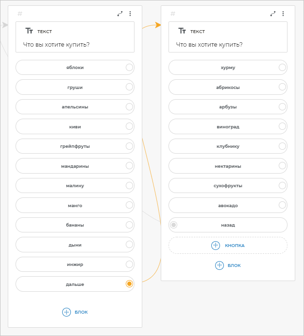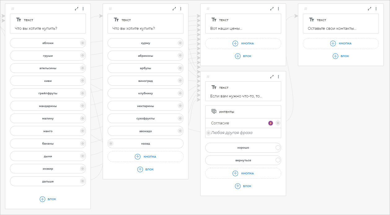 Реализовать это в конструкторе Aimylogic можно следующим образом: