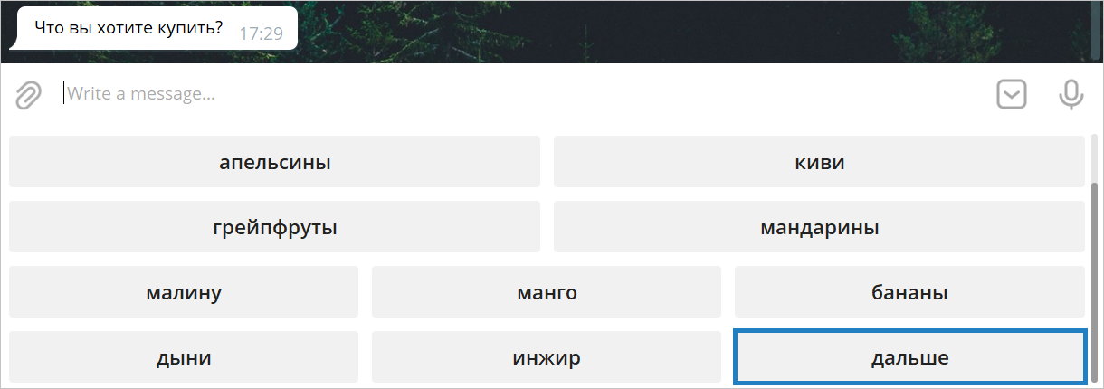 Если вы используете только кнопки и не используете интенты, то бот в ответ на другой ввод пользователя может отвечать «Извините, непонятно»: