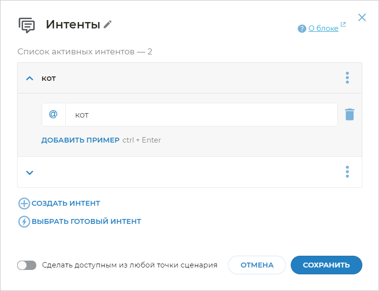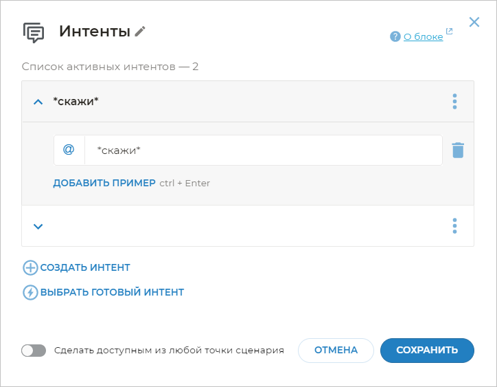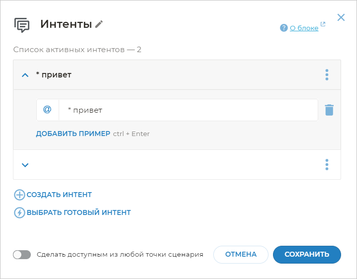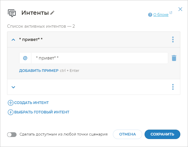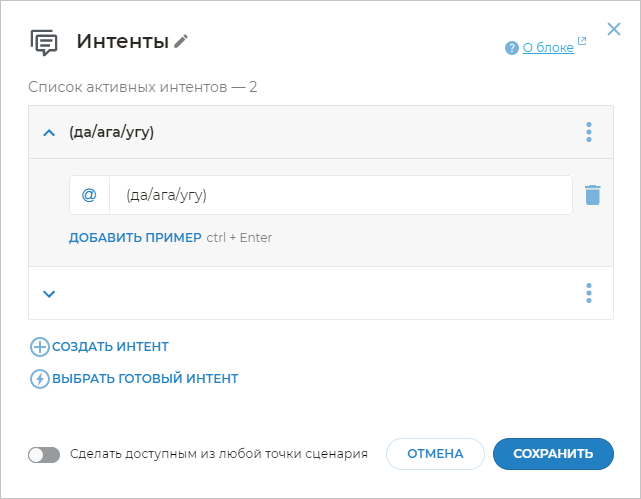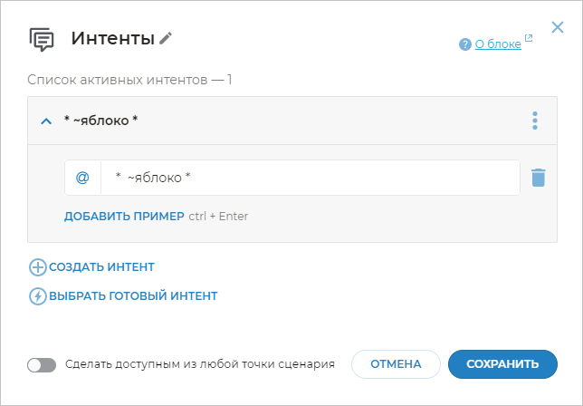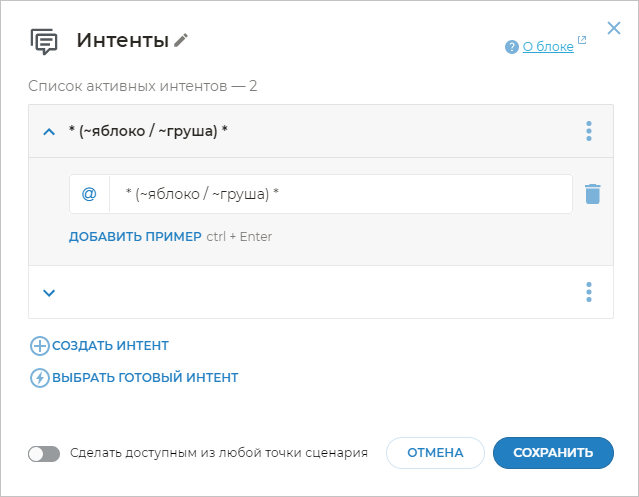 Иногда необходимо, чтобы бот реагировал не на все выражения клиента, близкие по смыслу к примерам фраз, а только на четкие шаблоны.