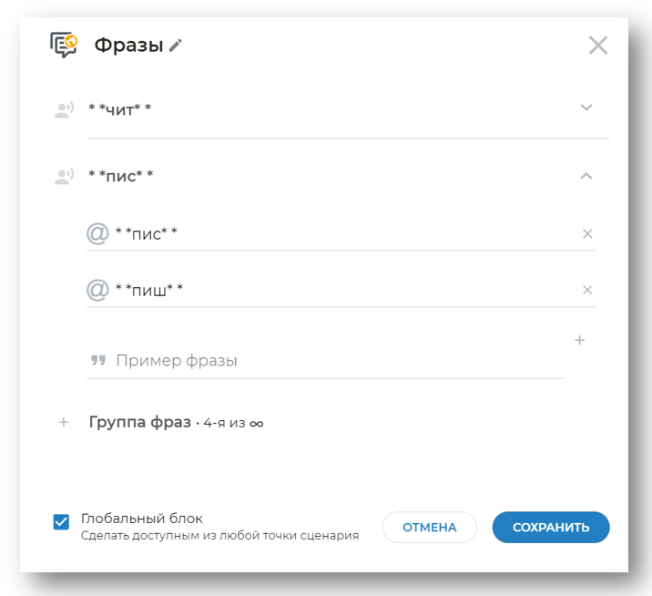 Шаг 8. Создайте глобальный блок фраз