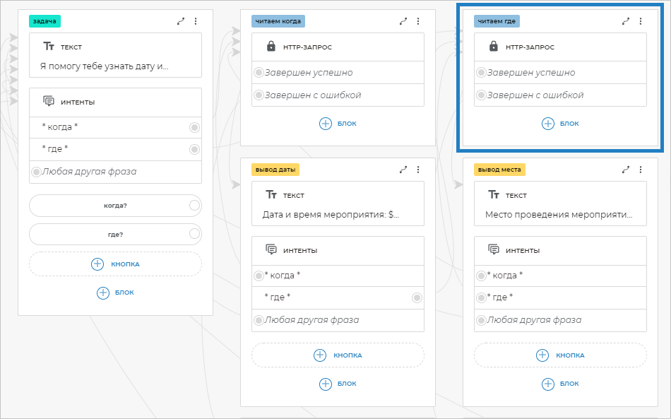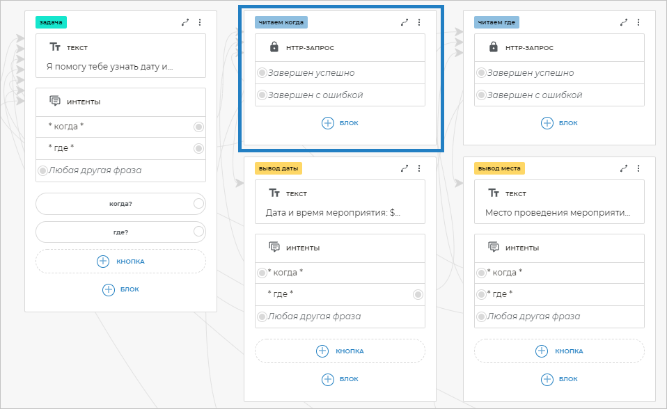 Вернитесь в сценарий и откройте блок HTTP-запрос с экрана «читаем когда».