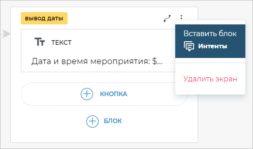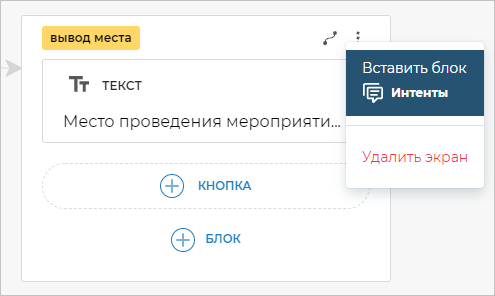 Добавьте в любое место сценария экран с блоком Интенты.