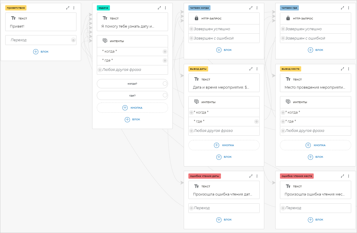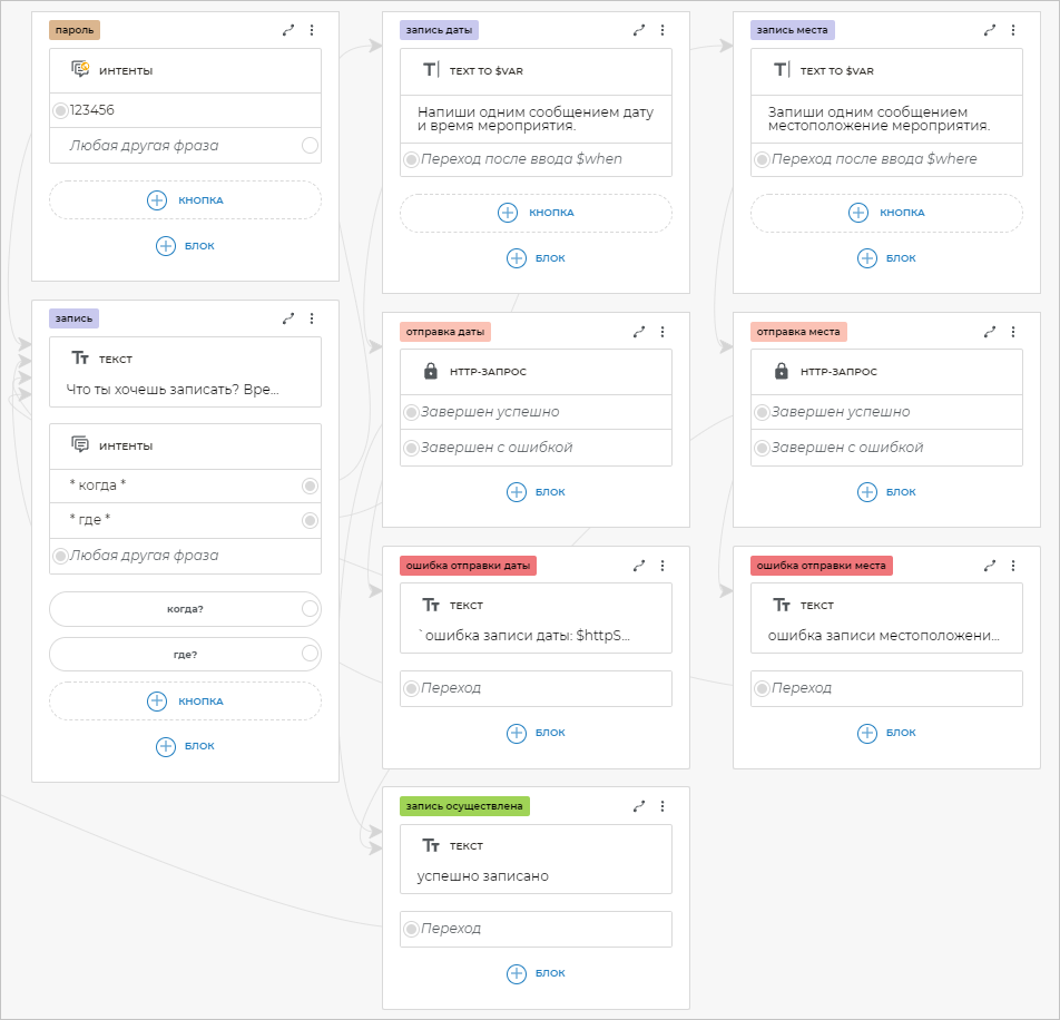 На этом шаге вы создадите сценарий для бота-секретаря.