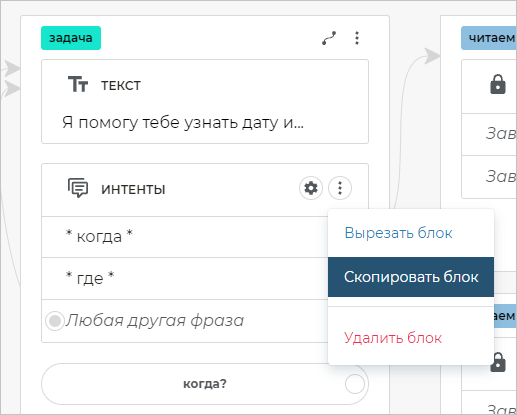На экране «задача» нажмите , чтобы скопировать блок Интенты.
