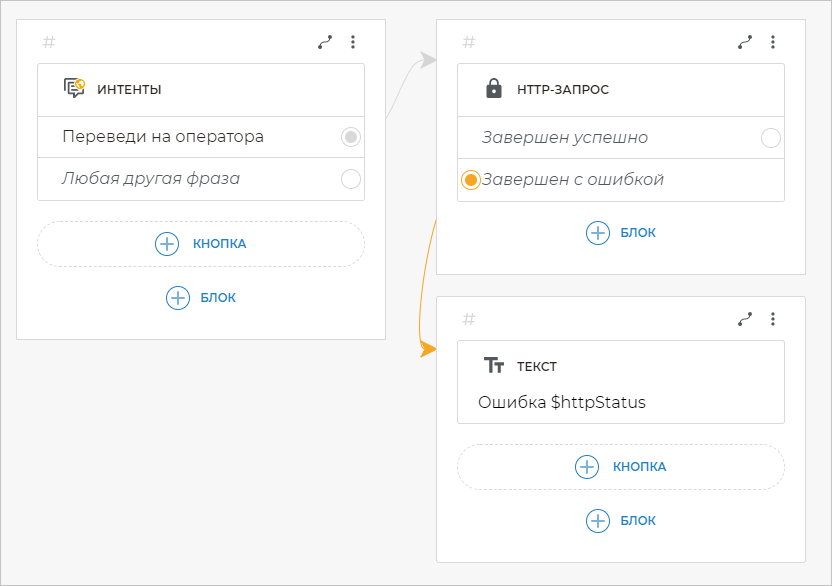 Свяжите добавленные интенты с блоком HTTP-запрос.