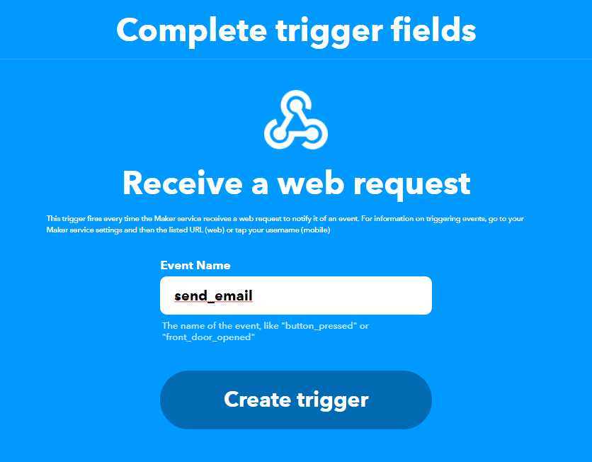 Придумайте любое название для события и напишите его в поле Event Name латинскими буквами без пробелов. Допускается использование нижних подчеркиваний. Нажмите Create trigger.