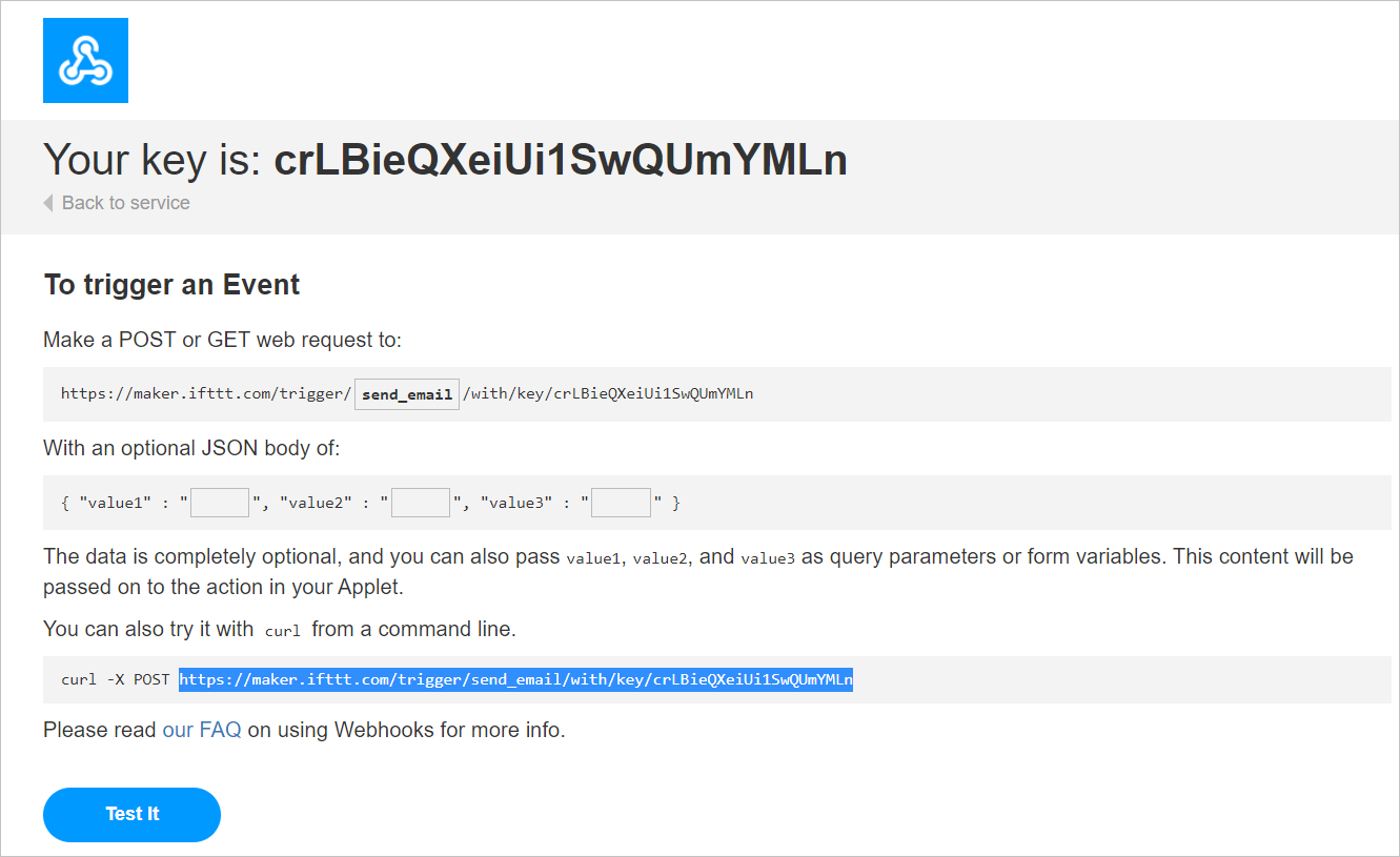 Для использования сервиса IFTTT в сценарии бота необходимо настроить вебхуки на стороне IFTTT. При помощи вебхуков бот будет отправлять данные на email.