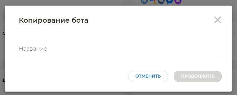 Далее в окне копирования укажите имя скопированного бота и нажмите Продолжить.