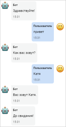 После того как клиент поздоровался, бот должен запросить его имя. А для того чтобы бот в дальнейшем прислал клиенту сообщение с полученным именем, боту нужно его сохранить.