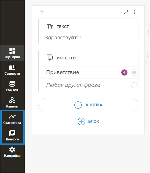 Поэтому после публикации бота в канале мы рекомендуем использовать разделы Статистика и Диалоги.