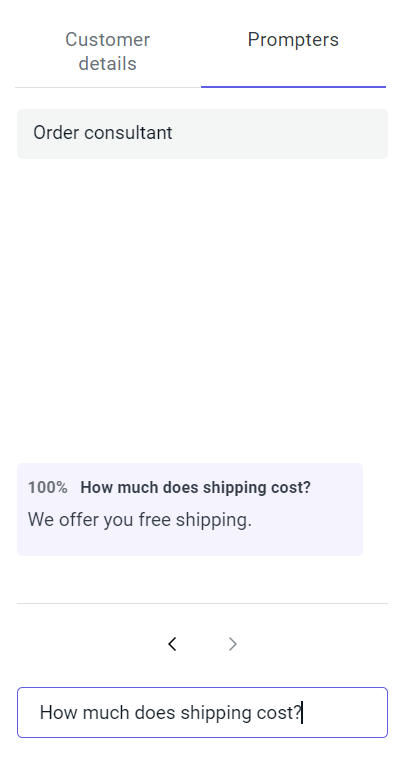 The context prompter picks suitable answers to a customer’s questions and displays them directly in the chat window: