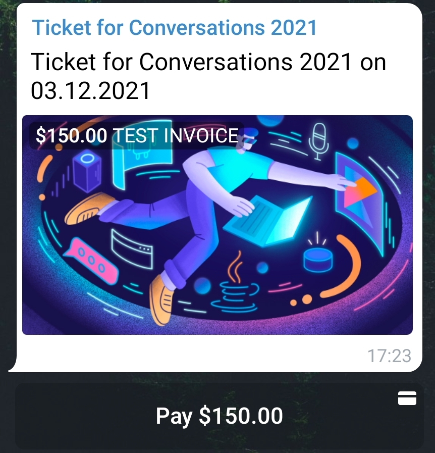 - Invoice details — specify any bot-defined invoice payload. These invoice details will not be displayed to the client.