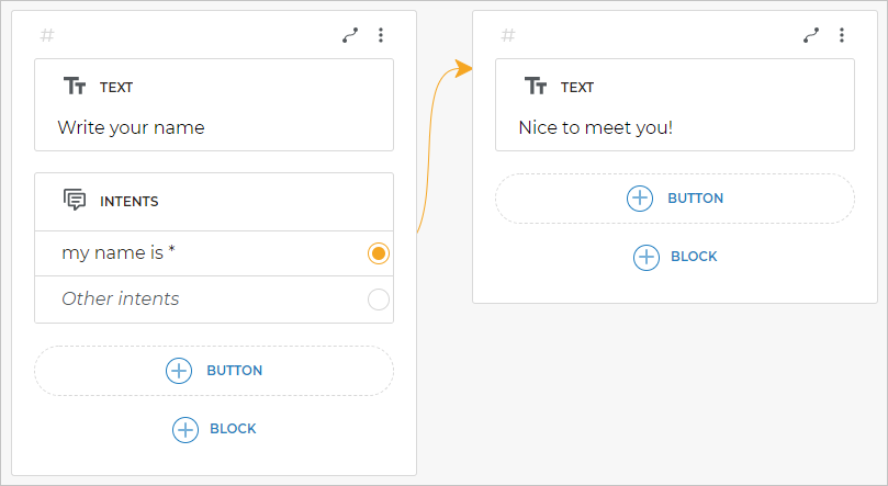 You can also connect this option to the same screen where the intent is placed. In this case, the bot will stay on this screen until the client writes the expected phrase.