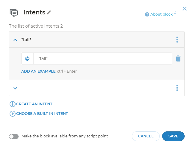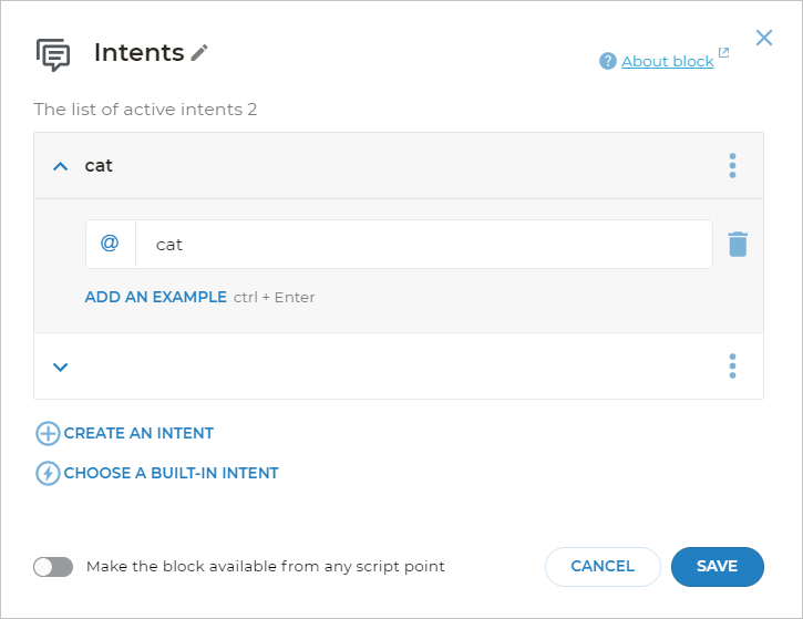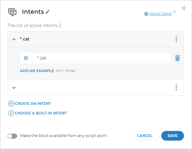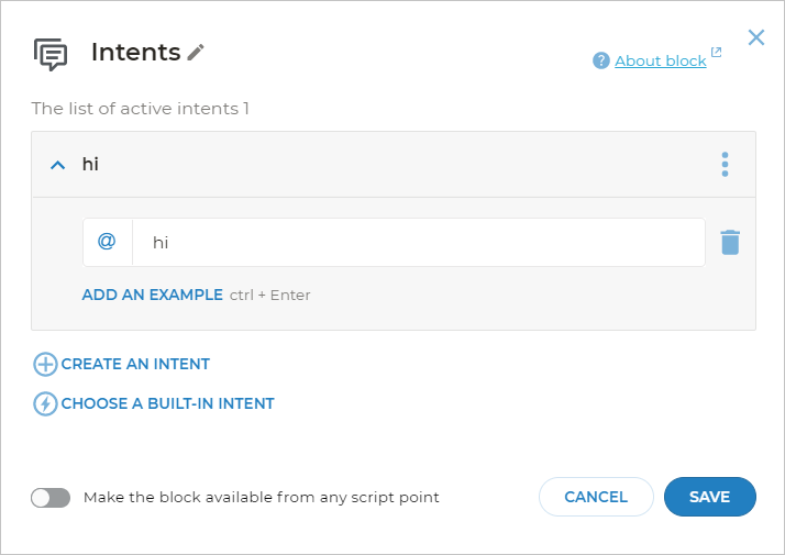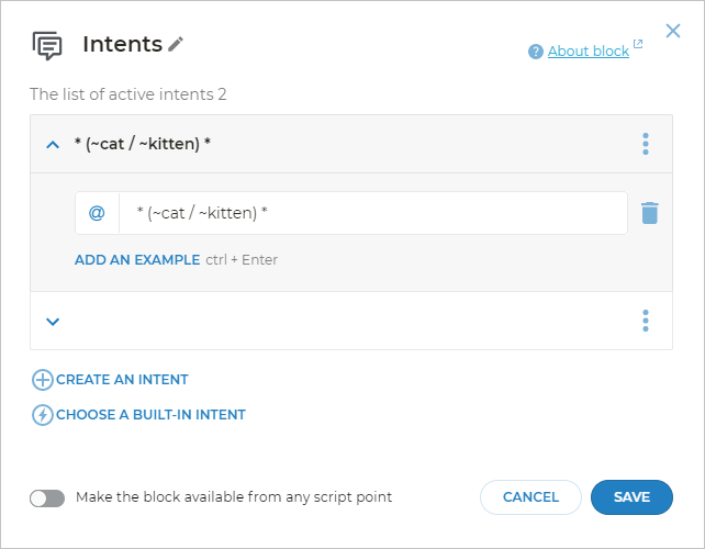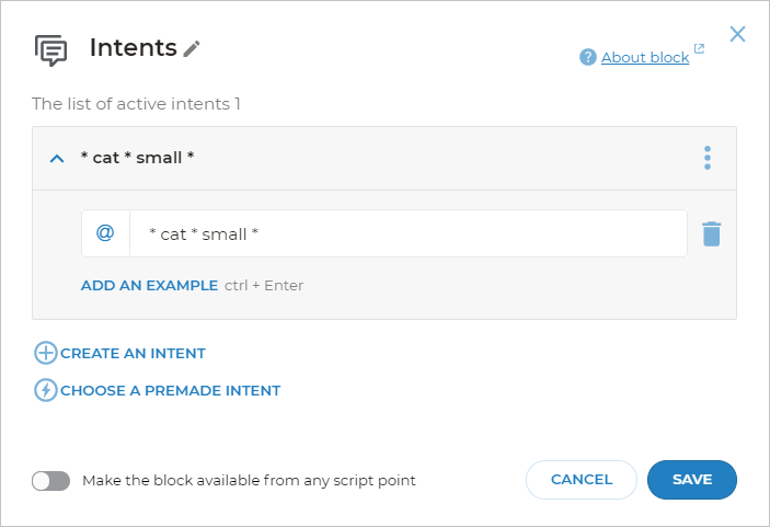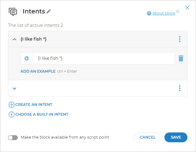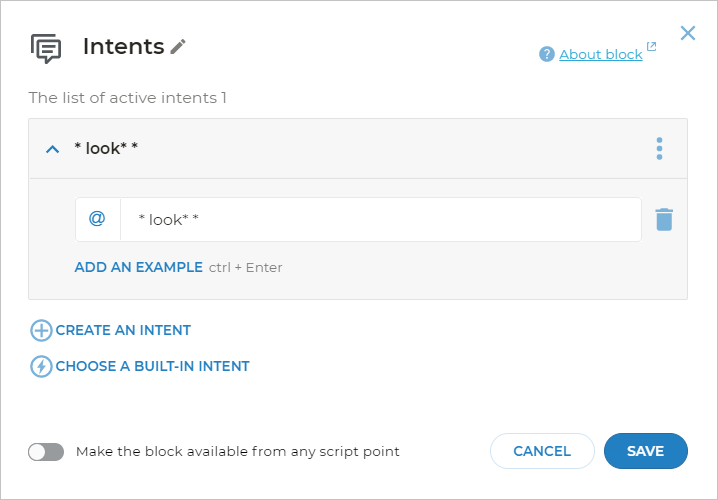 Using this syntax, you can write flexible templates which will help the bot understand the client’s phrases.