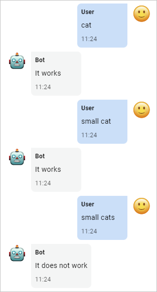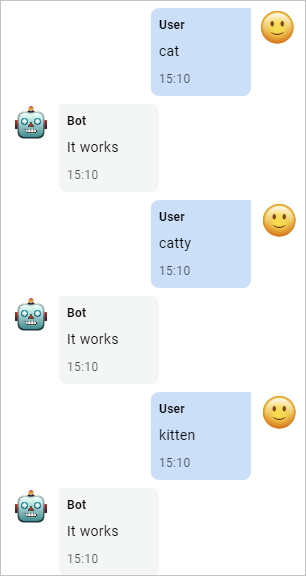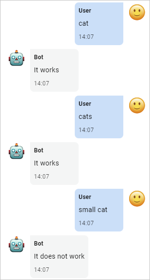 The cat* template will work for “cat”, “cats”, “cat’s”, etc. If you do not specify that there can be other words before and after the word cat, the bot will not recognize phrases with this word.