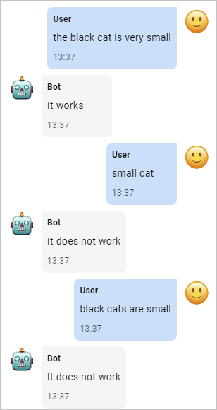 For example, it will work for the phrase “the black cat is very small”, but will not work for “cats are small”.