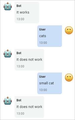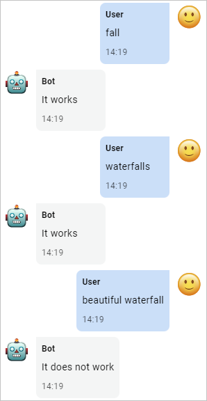 This template that contains only one word will make the bot react only at the exact word hi. If the phrase differs by at least one character, the bot will not recognize it.