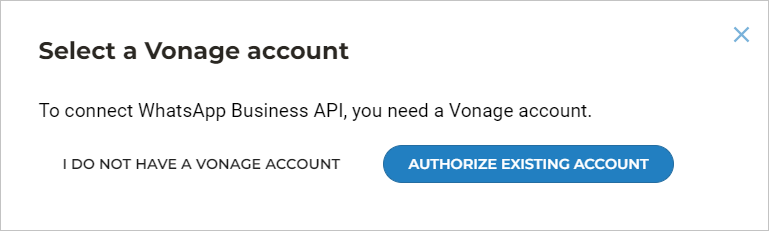 If you already have a Vonage account, select Authorize existing account.