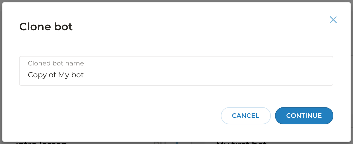 To copy your bot, go to your bot list and click Clone bot in the dropdown menu of your script: