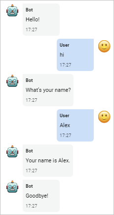You will see a widget where the bot will greet you. Reply with a greeting phrase and write your name when the bot asks for it.