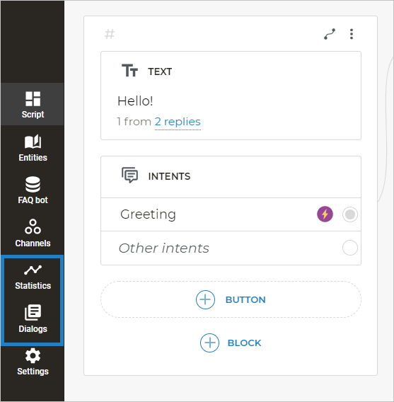 To help you analyze your Aimylogic scripts, we recommend you to use the Statistics and Dialogs sections.