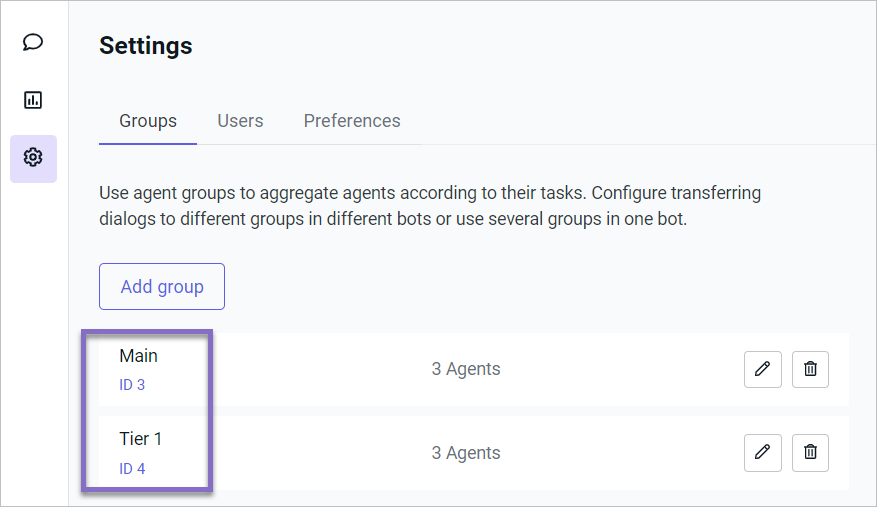 After signing in, you can invite agents and add them to groups. Then configure Aimychat preferences, for example: specify the limits on active chats for one agent and the response time. You can also make chats assigned to agents automatically.