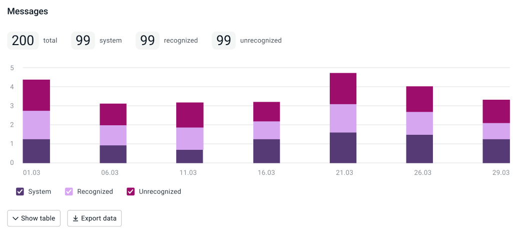 In the Reports section, you can view and download detailed statistics on bot performance. For example, you can use it to see: