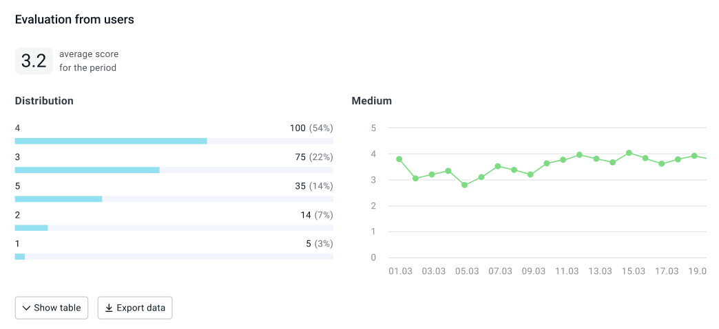 The Evaluation from users section displays statistics on the evaluations that users give in the dialog.