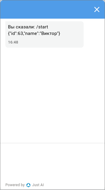 <q>/start {"id":55,"name":"Виктор"}</q>