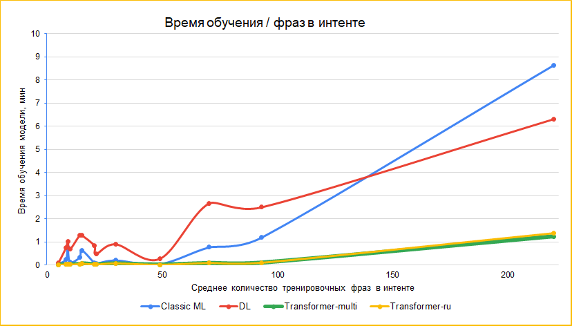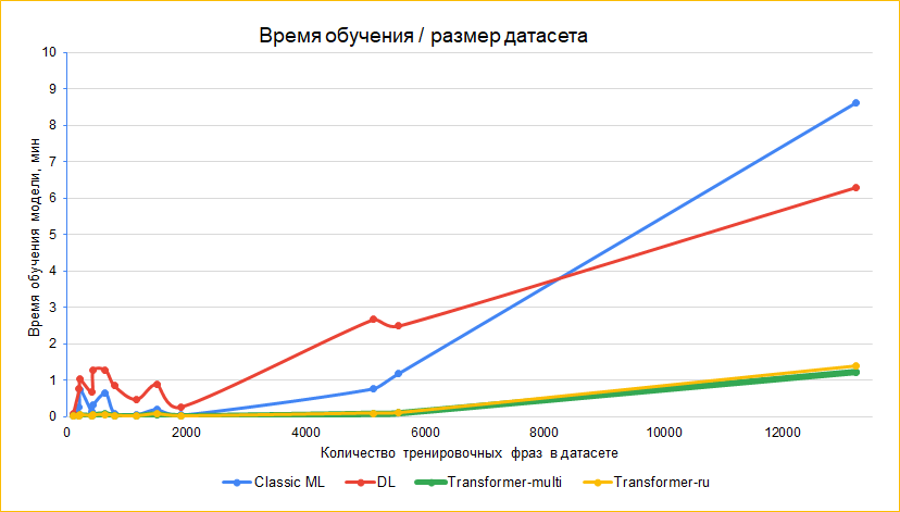 | Transformer multi | 80–90% | Несколько минут, если датасет имеет больше 10 тыс. фраз | Нет |