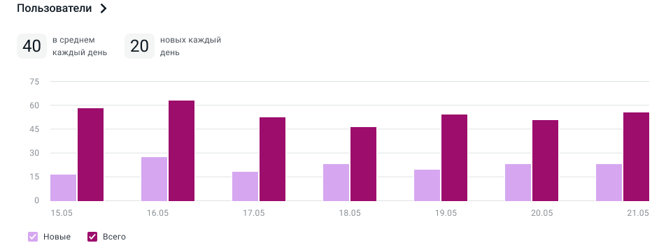 Ниже в карточке Пользователи отображается график с числом пользователей за выбранный период: